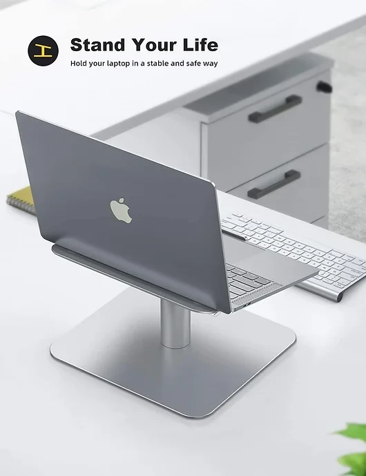 • 【Ergonomic Design】 The MacBook pro stand holder works as a raiser to elevate the laptop screen to your eye level, fixes your posture and frees you from back/neck stiffness.The rod connecting with base rotates 360 degree, enable you swivel the laptop to any angle you want.