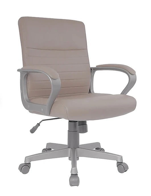 Stay comfortable while you work in this Tervina™ cream managers chair. Padded armrests provide added comfort, and built-in lumbar offers additional support. The soft upholstery looks and feels just like real leather for an elegant finishing touch. Use the pneumatic seat height adjustment and tilt tension to find then lock the perfect setup for your body.
