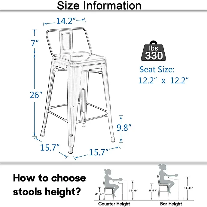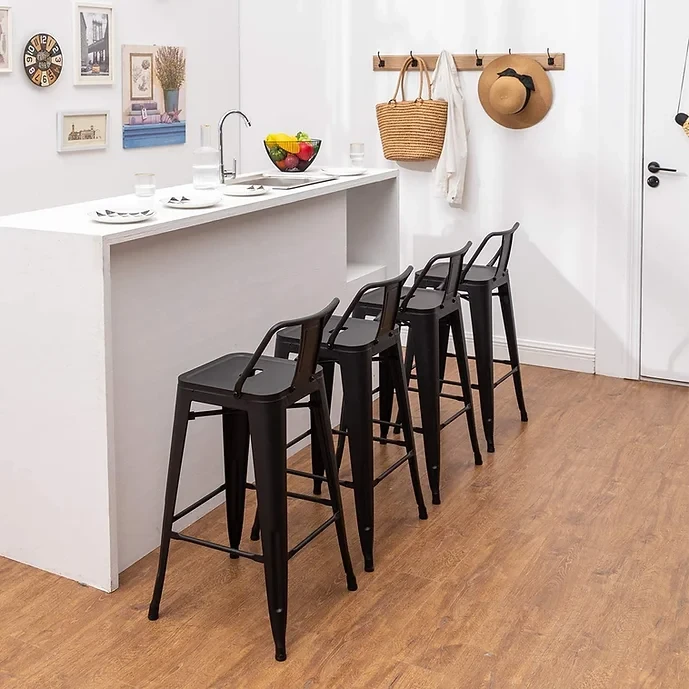 • 【Better Design】: This kind of mental bar stools is stackable. It can save your space without using and easy to carry. The low back can be detached, using as backless style.