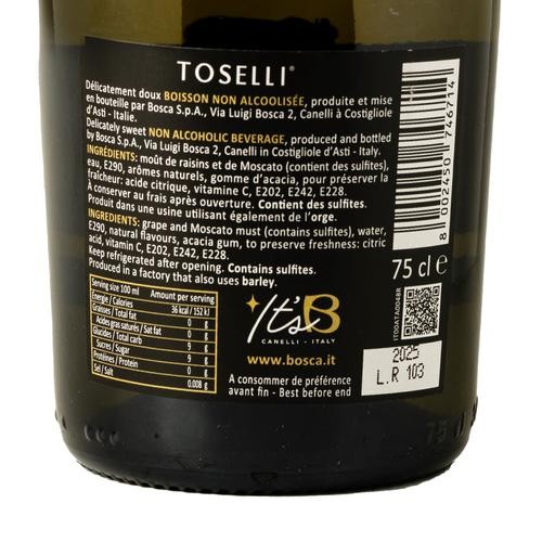 A sweet and satisfying sparkling juice drink. For those who don't want or can't drink alcohol, these are the perfect bubbles. Sweet, acidic, balanced. Simply Toselli.