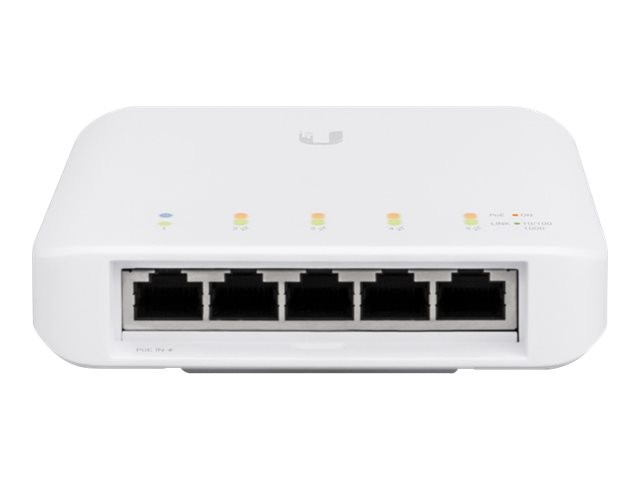 Build and expand your network with the UniFi Switch, model USW-Flex. The USW-Flex is a configurable Layer 2 Gigabit switch with auto-sensing 802.3af PoE. It offers five RJ45 Gigabit Ethernet ports, providing 1 PoE input and 4 PoE output links to your devices.