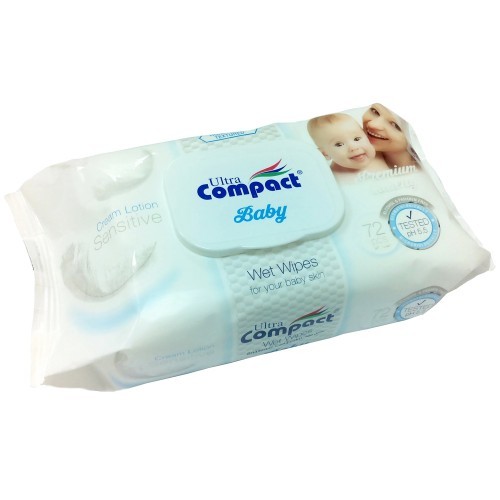 Ultra Compact Baby Wet Wipes Cream Lotion Sensitive, 72 Count