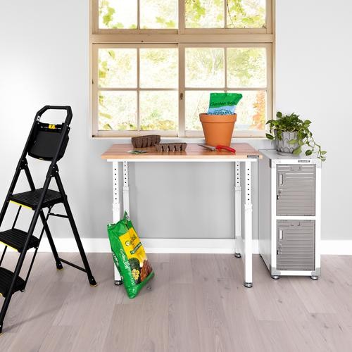 This table is perfect for professionals and hobbyists alike. Thanks to its adjustable sturdy and spacious design, this table can be customized to meet your specific needs and provides plenty of room for all your work. Made with commercial grade steel frame and powder-coated white, and 1in thick solid birch wood top. *THIS ITEM DOES NOT QUALIFY FOR STANDARD OR EXPRESS DELIVERY. A PRICESMART REPRESENTATIVE WILL REACH OUT TO YOU WITHIN 48 HOURS BY PHONE TO ARRANGE ALTERNATIVE DELIVERY. AFTER PHONE CONTACT, DELIVERY TIME IS TYPICALLY 3 TO 7 DAYS.