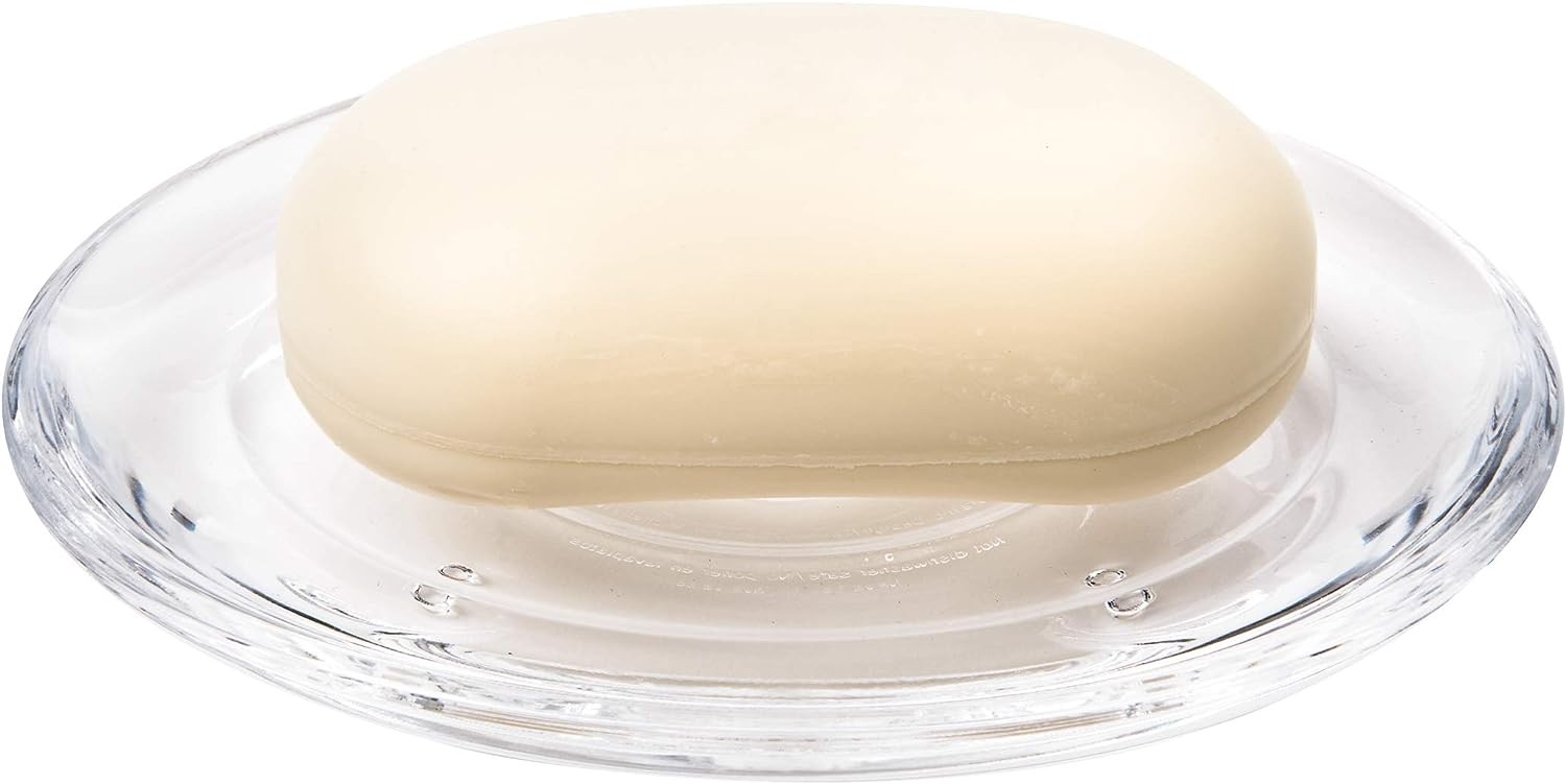 Umbra Droplet Acrylic Soap Dish. The Droplet Soap Dish from Umbra is simple in style and form. This soap dish is made from crystal clear, heavy-duty, break-resistant molded acrylic, with ridges on the bottom to help keep your soap from melting in standing water. Measures 5.5 inches Lx3 inches Wx3.5 inches H. Coordinate your look with the entire Droplet bath accessory collection. Designed by Michelle Ivankovic for Umbra- the worldwide leader in casual, contemporary and affordable design for the home.