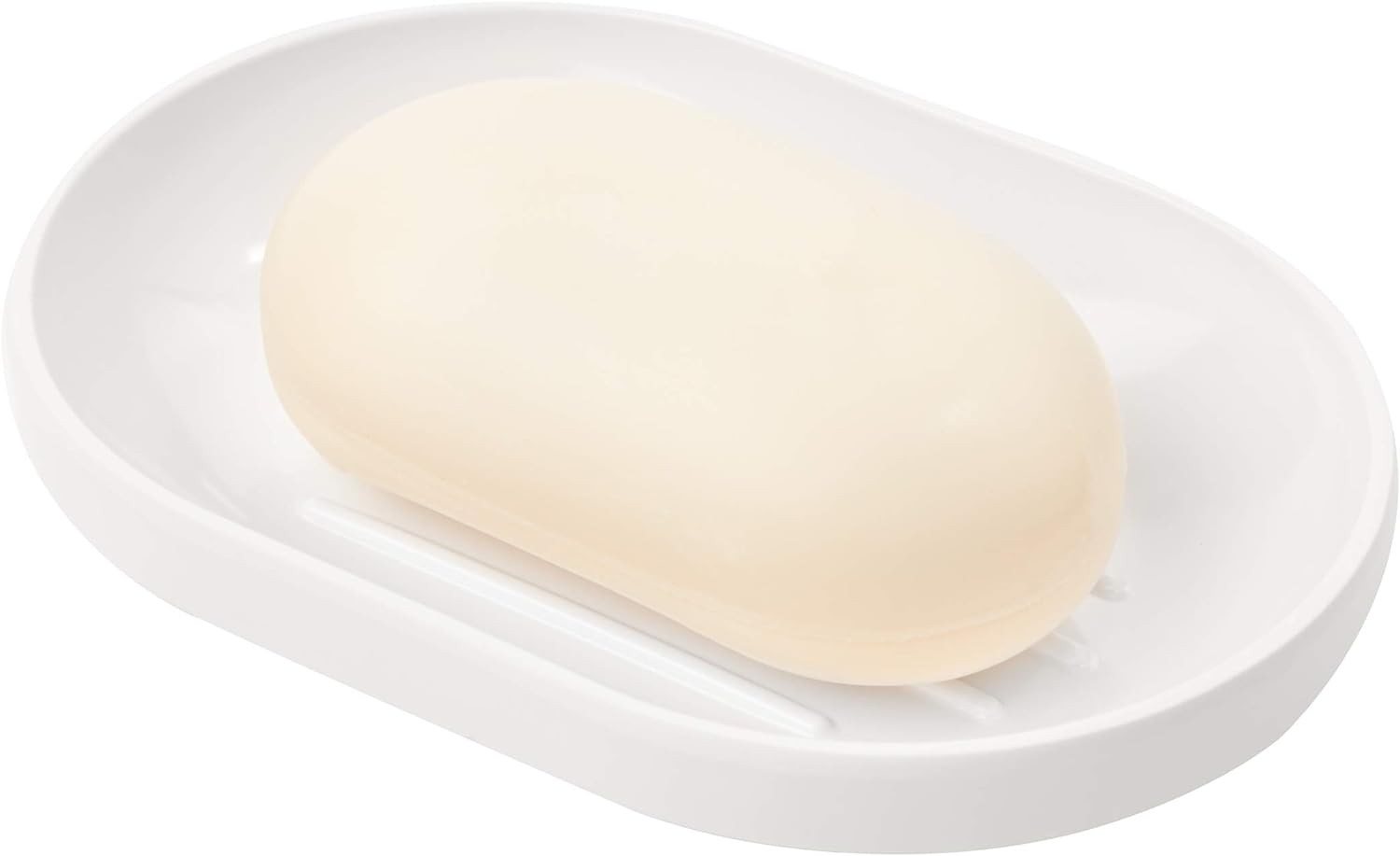 Umbra Step Soap Dish, White. The contemporary Step collection of bathroom accessories by Umbra features a step detail on the bottom of each piece which gives the illusion of levitation above the surface that it is sitting on. The pieces are constructed of durable, easy-to-clean melamine and are available in a modern color palette that adds a stylish splash to your bathroom. This low-profile soap dish is ridged inside for drainage so soap lasts longer. Measures 5-3/4 Inch by 1 Inch by 4 Inch. Designed by Tom Chung for Umbra - the worldwide leader in innovative, casual, contemporary and affordable design for the home.