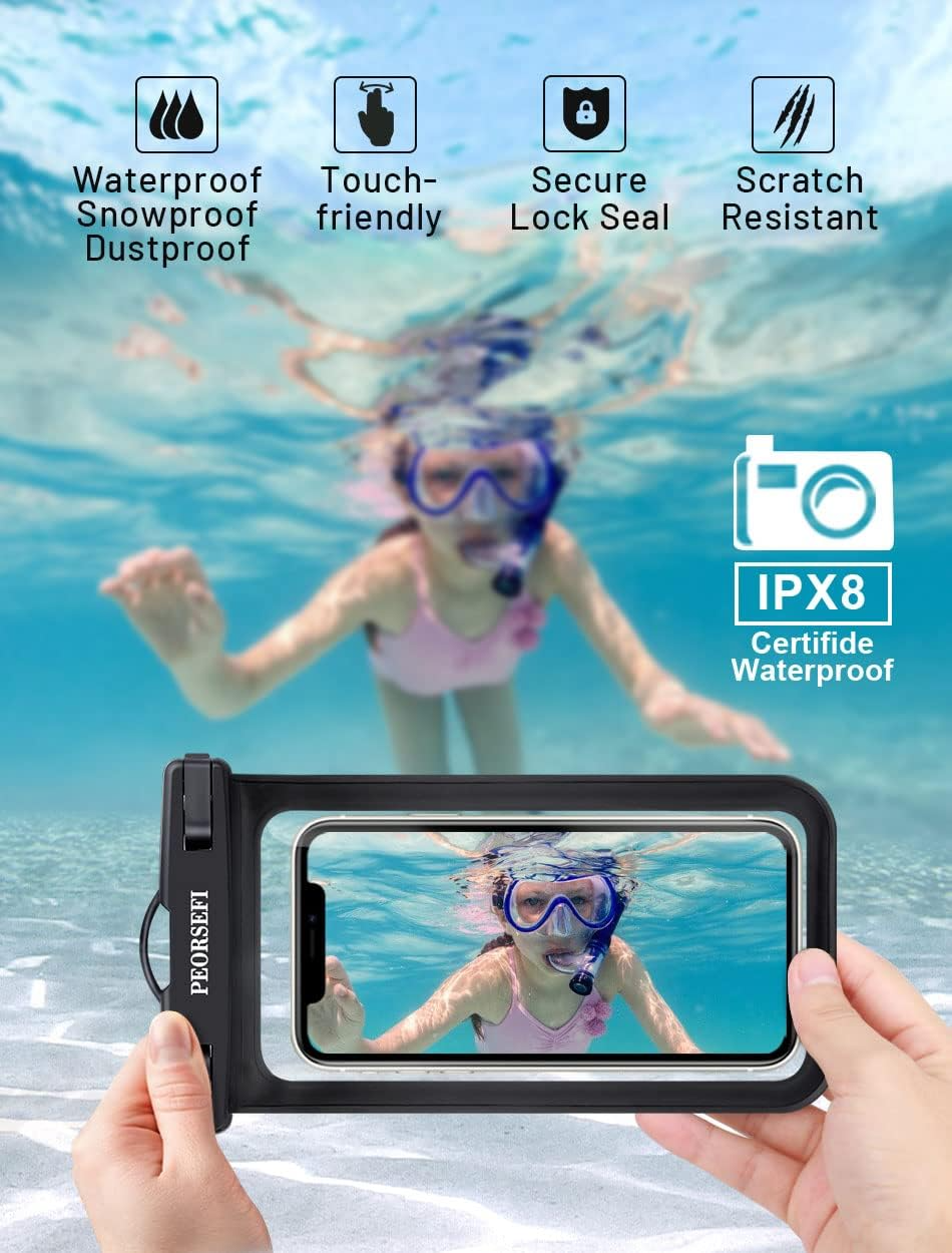 • 【Perfect waterproof performance】- IPX8 professional certification, waterproof is 100 feet / 30 meters, waterproof phone pouch design for swimming, beaches, drifting, fishing, boating, etc., waterproof, rainfall, anti-snow, anti-sand, anti-dirty Swipe, etc., protect our mobile phone safely under extreme conditions