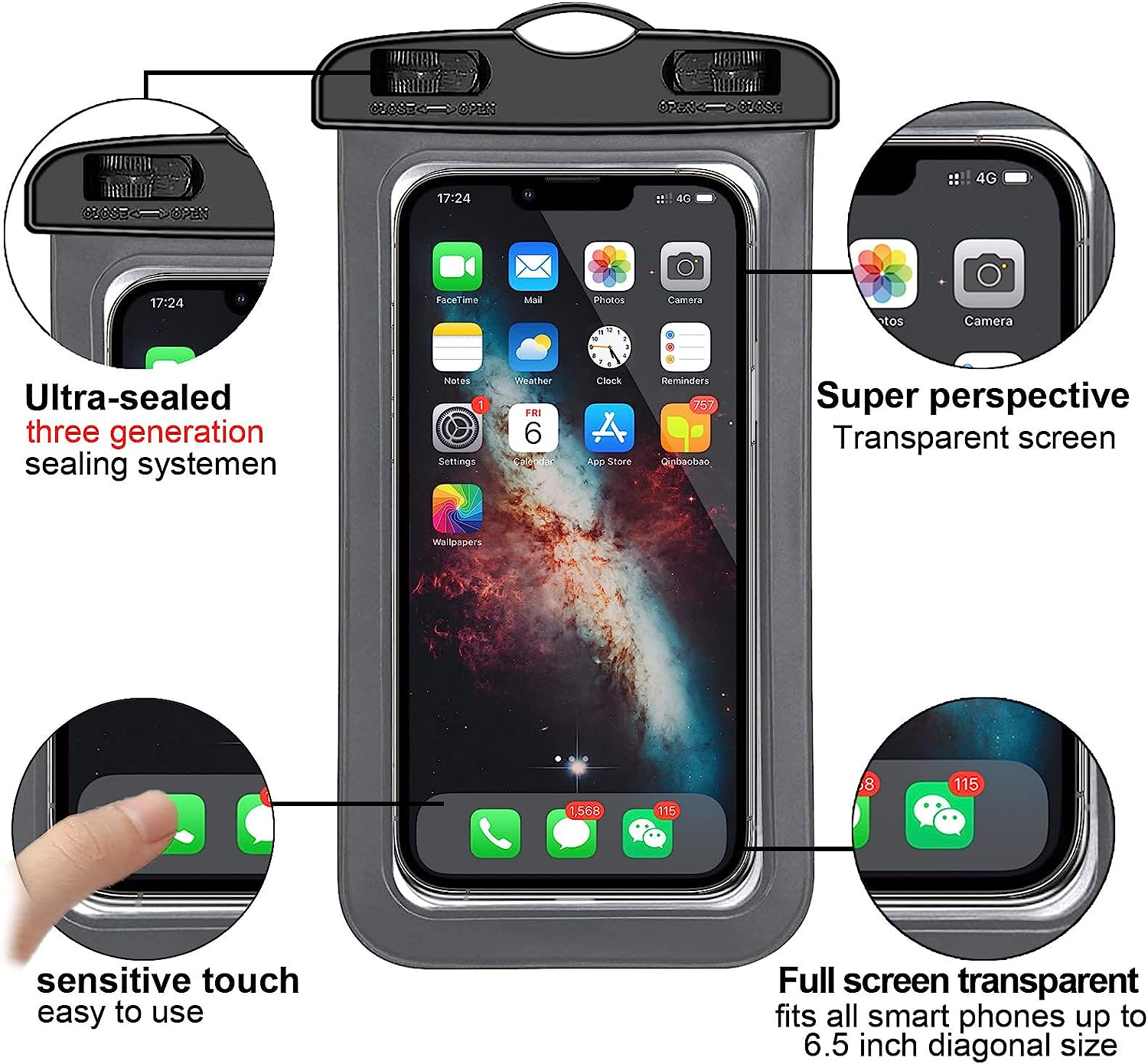 • Universal design: waterproof case dry bag fits all smart phones up to 6.7" diagonal size, waterproof case dry bag for beach, fishing, swimming, boating, kayaking, snorkeling and water park activities