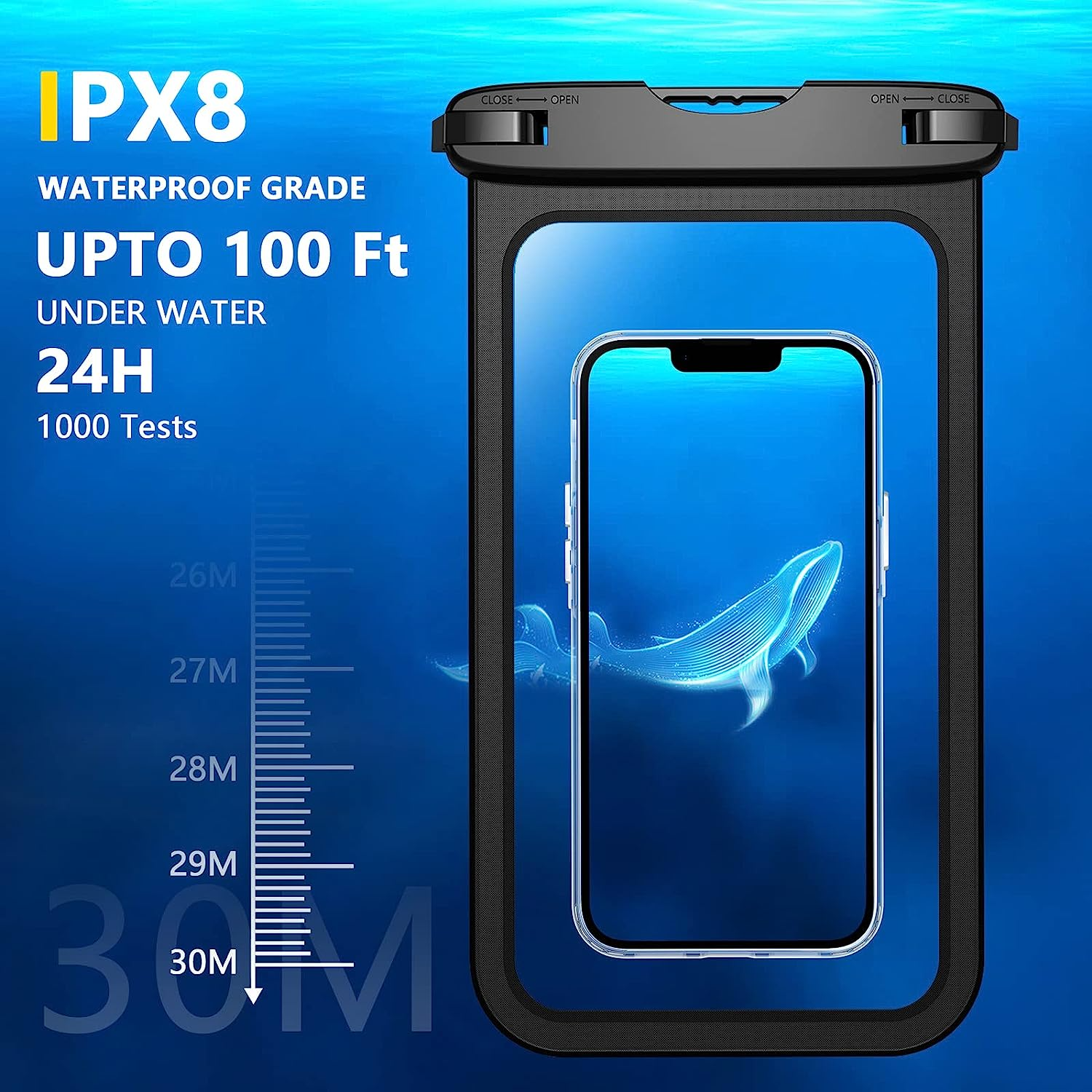 • 【IPX8 Certified Waterproof】After around 1000 Tests, no leakage or water damage during 30M (100 Ft) deep underwater. Temdan waterproof pouch case is specially designed for outdoor activities such as pools, beach, fishing, swimming, sailing, skiing, boating, kayaking, snorkeling, tubing, rafting, shower, sauna and other water park activities, keep your device away from water, dust, snow, enjoy your life.