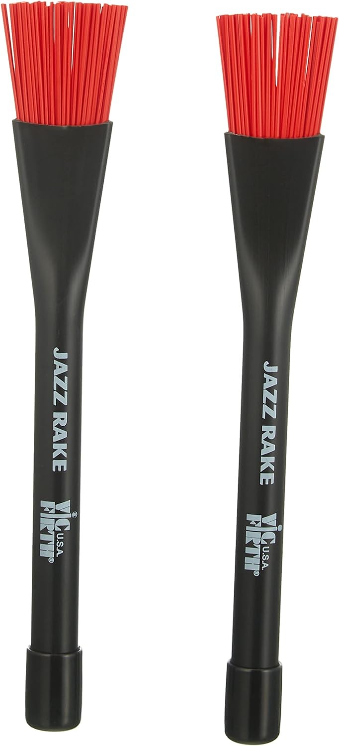 JZR Features: -Jazz rake brush.-Material: Plastic.-Retractable thin flexible bristles for fusion and jazz.-Spread: 4''.-Made in USA.-Diameter: 0.61''. Color/Finish: -Color: Red.