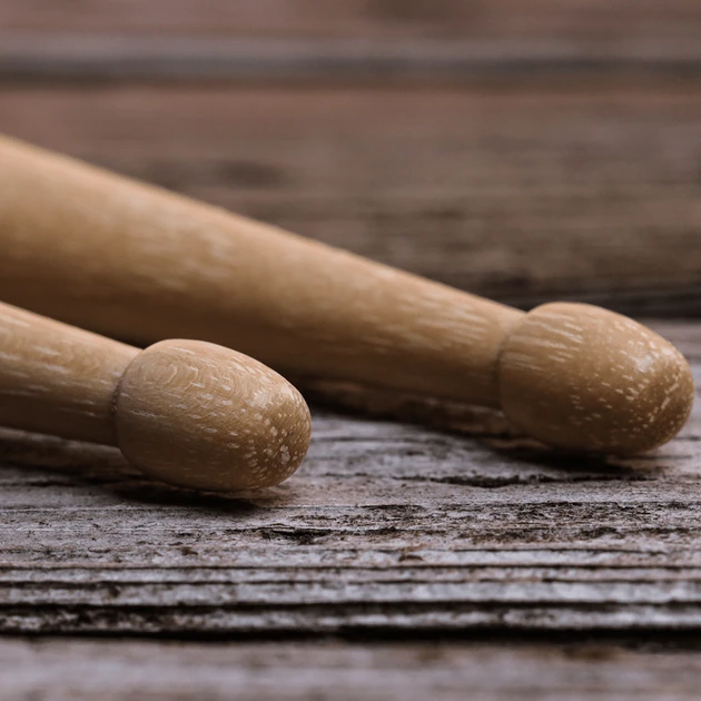 This pair of X5A drumsticks features a longer shaft for added power and a wood teardrop tip for a warm, solid attack.