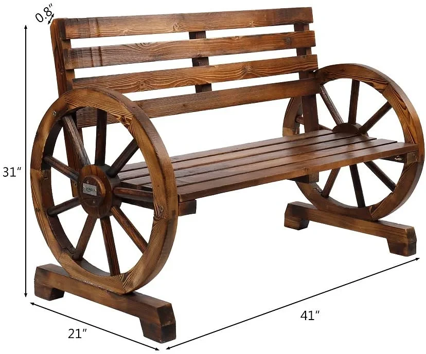 VINGLI Rustic Wooden Wheel Bench, 41" 2-Person Wagon Slatted Seat