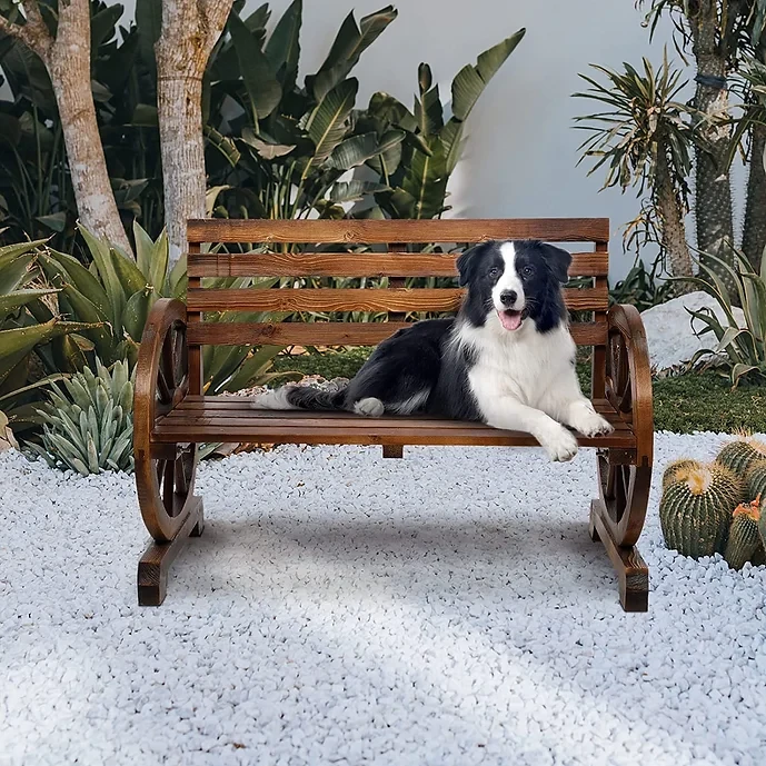 • 【Unique Design】Wagon wheel armrests with large slatted back and seat make this bench a stylish and comfortable place to rest