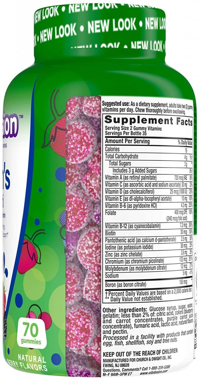 Directions: As a dietary supplement take two (2) gummy vitamins per day.