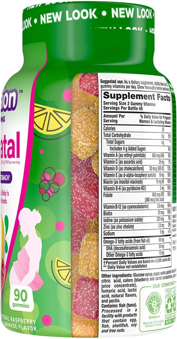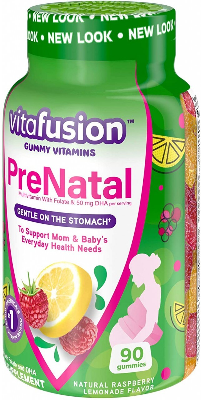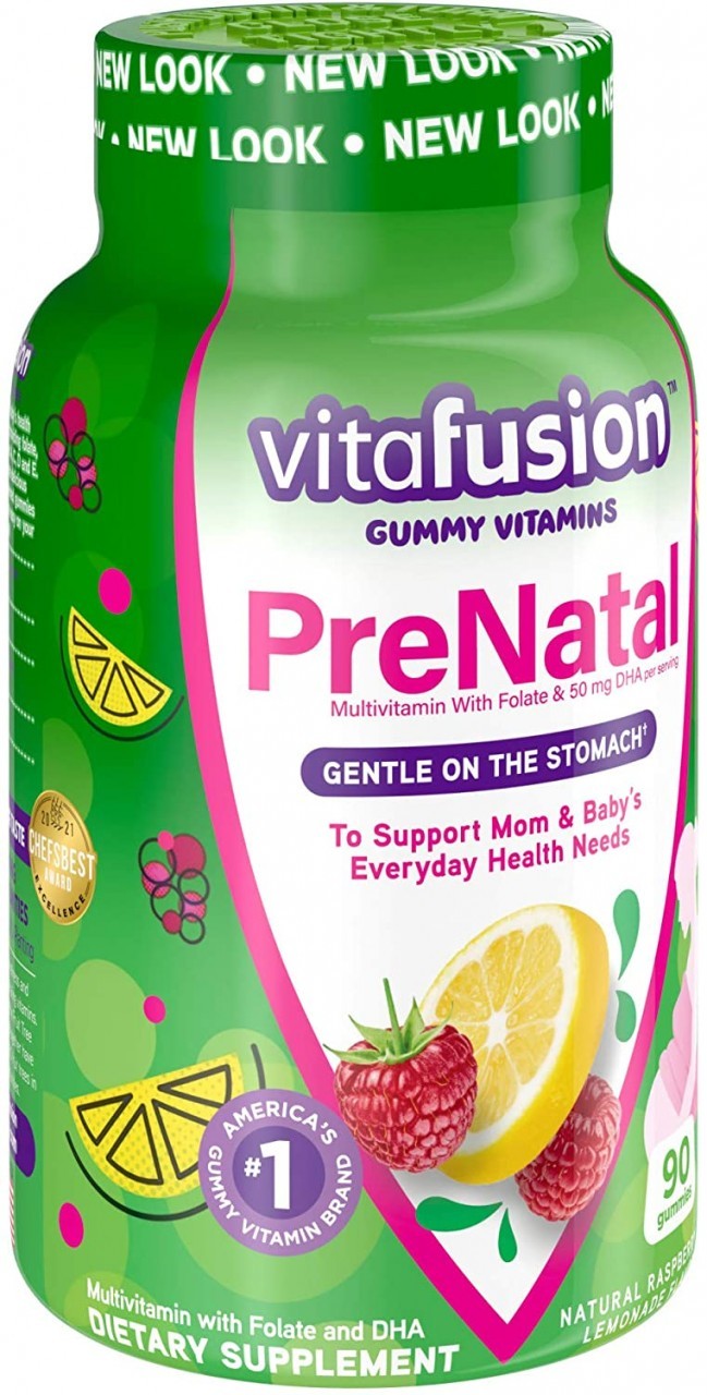 Vitafusion PreNatal gummy vitamins provide a multivitamin that has been formulated to support the specific health needs of women before, during, and after pregnancy. You'll love the delicious fusion of essential vitamins, minerals, and natural fruit flavors. With no iron added, they’re easy on the stomach and provide expectant mothers a multi-vitamin formula with an excellent source of folate and 50 mg of DHA[1]. 2 gummies provide: 100% Daily Value Folate, 50 mg of Omega-3 DHA[1]; An excellent source of vitamins A and D. Natural Lemon & Raspberry Lemonade flavors. At vitafusion, we believe taste and nutrition can be fused together to deliver the best vitamin experience, ensuring it’s an easy and delicious part of your day. For over 12 years, we’ve been helping people to live happy and healthy lives with our gummy vitamins and supplements. vitafusion is the only gummy vitamin brand with products that have been awarded the ChefsBest Excellence award for taste [2]. Anything is possible when great nutrition is your foundation. Take a fruitful step toward a healthier, happier world with America’s #1 gummy vitamin brand. Vitamin Better! [2] The ChefsBest Excellence Award is awarded to brands that surpass quality standards established by independent professional chefs. [1] These statements have not been evaluated by the Food and Drug Administration. This product is not intended to diagnose, treat, cure or prevent any disease.
