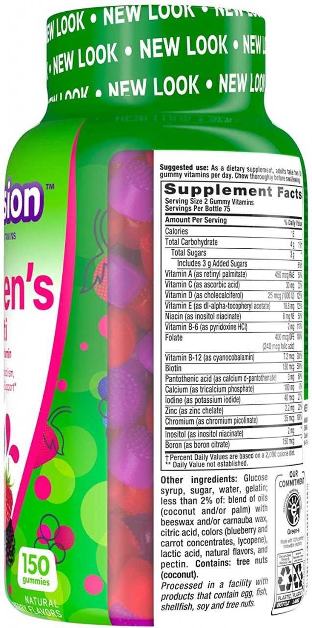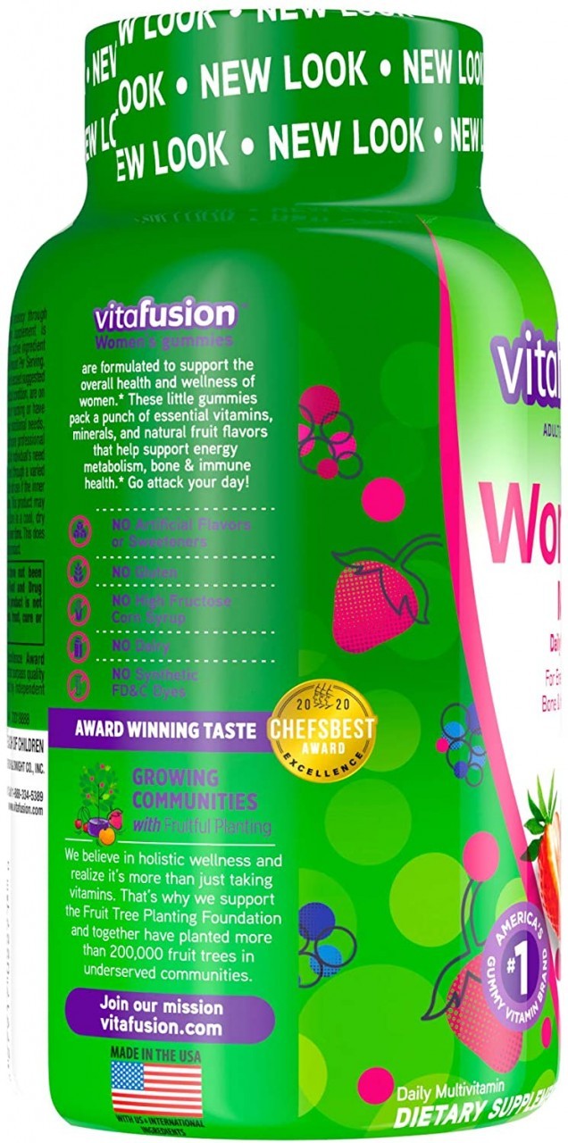 Vitafusion Women's multivitamin provides a delicious, complete multivitamin specially formulated to support the health needs of women. Each delicious two-gummy serving combines essential vitamins and minerals with natural fruit flavors to provide: Energy metabolism and bone support[1]; An excellent source of Vitamins A, C & D. Award-winning taste with delicious, natural berry flavors. At vitafusion, we believe taste and nutrition can be fused together to deliver the best vitamin experience, ensuring it’s an easy and delicious part of your day. For over 12 years, we’ve been helping people to live happy and healthy lives with our gummy vitamins and supplements. Vitafusion is the only gummy vitamin brand with products that have been awarded the ChefsBest Excellence award for taste. [2] Anything is possible when great nutrition is your foundation. Take a fruitful step toward a healthier, happier world with America’s #1 gummy vitamin brand. Vitamin Better! [2] The ChefsBest Excellence Award is awarded to brands that surpass quality standards established by independent professional chefs. [1] These statements have not been evaluated by the Food and Drug Administration. This product is not intended to diagnose, treat, cure or prevent any disease.