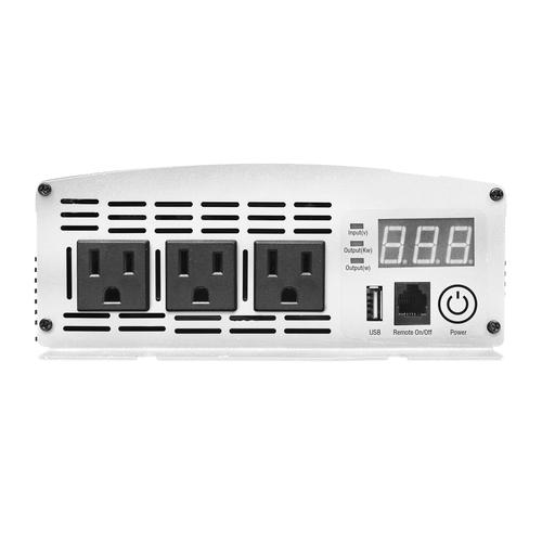 Features: 1250W Power Inverter. LED Display. AC Outlet. USB Port | Item Dimensions: 10.2" x 13" x 4.3" (25.9 CM X 33.02 cm x 10.9 cm) | Weight: 7.9 lb | Made in China.