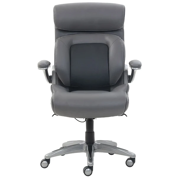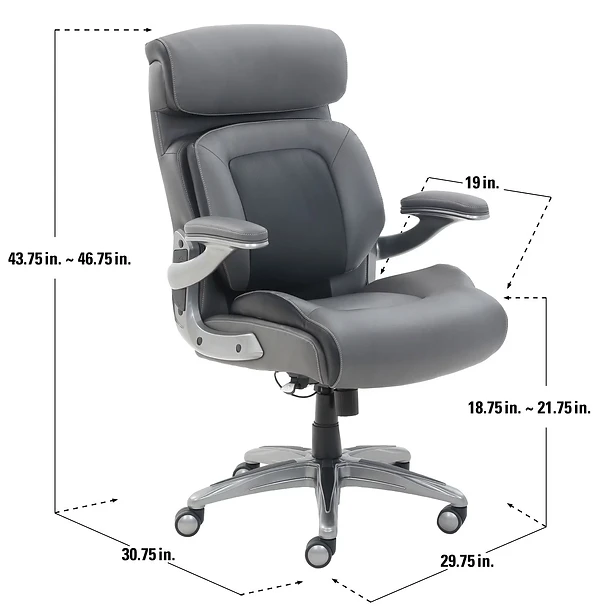 This Wellness By Design™ Articulating Lumbar Support Mangers Chair was designed with the user's well-being in mind. Incite 3D articulating lumbar technology has a self-adjusting central pivoting hub that allows it to flex in all axis with no user input, maintaining ideal spin curvature and support following your every move while you work. Within the seat lies a matrix of supportive comfort coils to displace weight, creating an amazing all-day comfort experience. Flip-up height-adjustable arms and pneumatic seat height adjustment with tilt lock feature enable the perfect seating position.