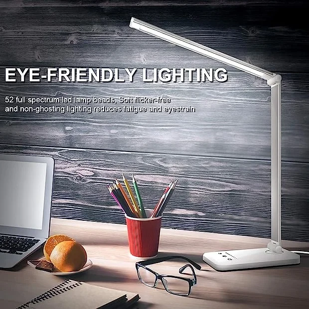 • Eye-friendly LED panel: 52 full spectrum beads with soft light, no flicker, no shadow, which avoids eye fatigue caused by flickering light and harsh glare effectively, desk lamp is ideal for reading, study for long time