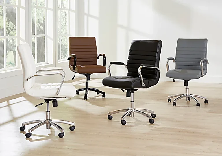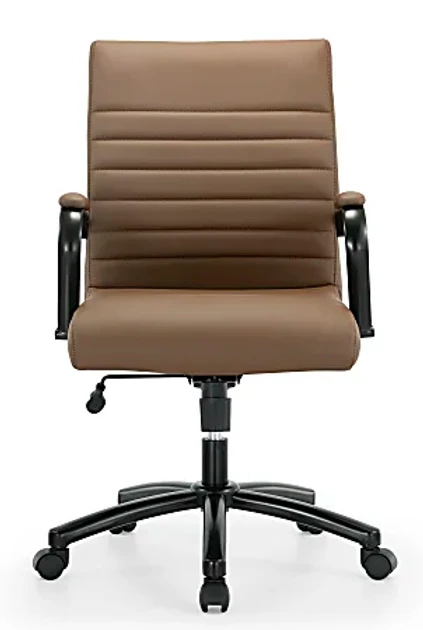 Furnish your workstation with this Realspace Modern Comfort Winsley mid-back bonded leather chair. The metal frame offers sturdy support, while the lumbar support promotes an upright posture and strain relief. Pneumatic seat-height adjustment and tilt lock let you effortlessly customize your seating position. This Realspace Modern Comfort Winsley mid-back chair features rolling casters for seamless maneuvering and bonded leather upholstery for easy cleanup.