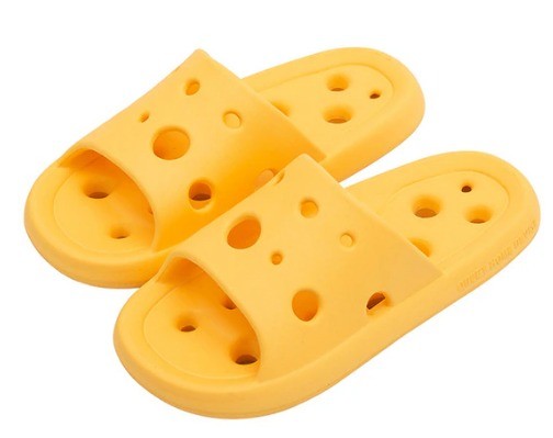 Women Bathroom House Cheese Slippers Light Weight Water Leaky Beach Flip Flop Non-slip Pool Swimming Aqua Shoes