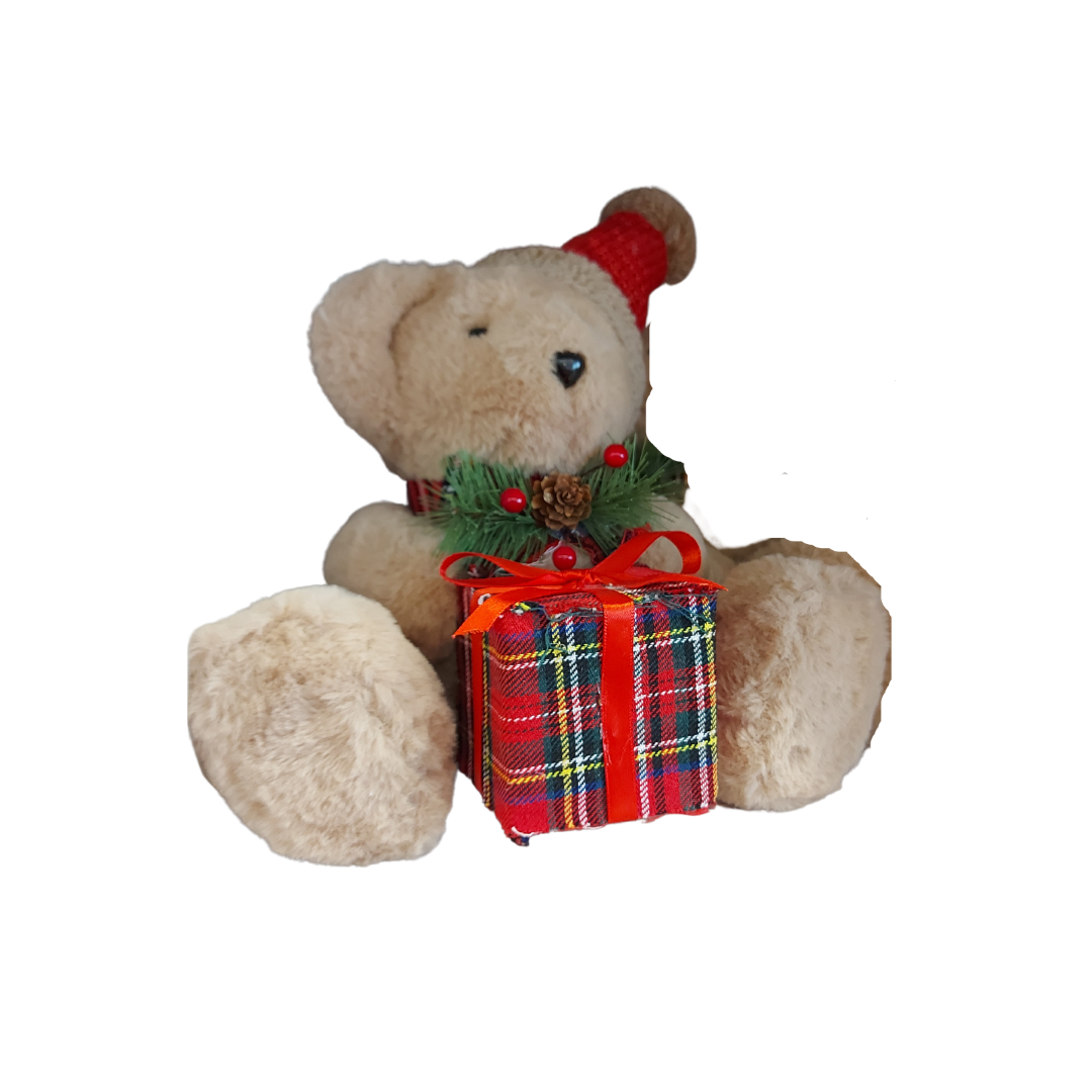 • What you get - Our Christmas teddy bear is covered with brown fur wear a red Christmas hat decorated with mistletoe. It also wears wore a red and green Christmas scarf. Xmas Red is also chosen for the nose and mouth embroidery. Send out this bear and Christmas will come soon.