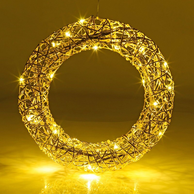 Decorate your walls & doors this christmas with a light up wreath to add a touch of modernity to traditional xmas home decor. The Wreaths are constructed on a metal frame and are then covered in either Gold wrap with White Pearls or Rattan twigs with Glittery White Snow topped artificial Green leaves.