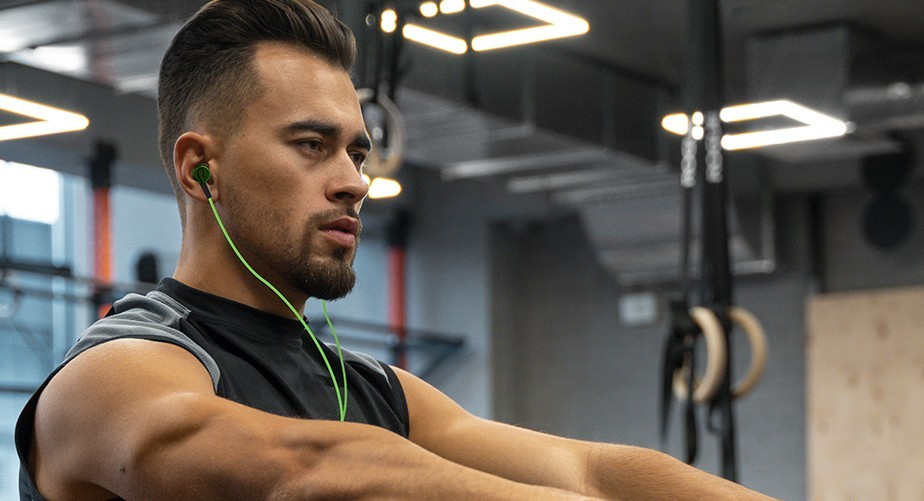 • Earbuds with microphone and built-in control button to play and pause music