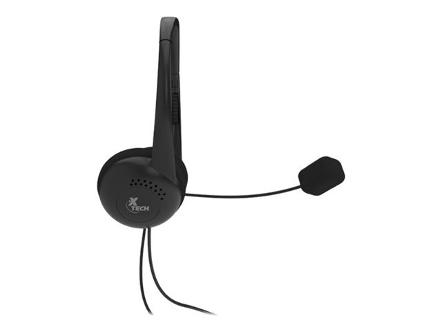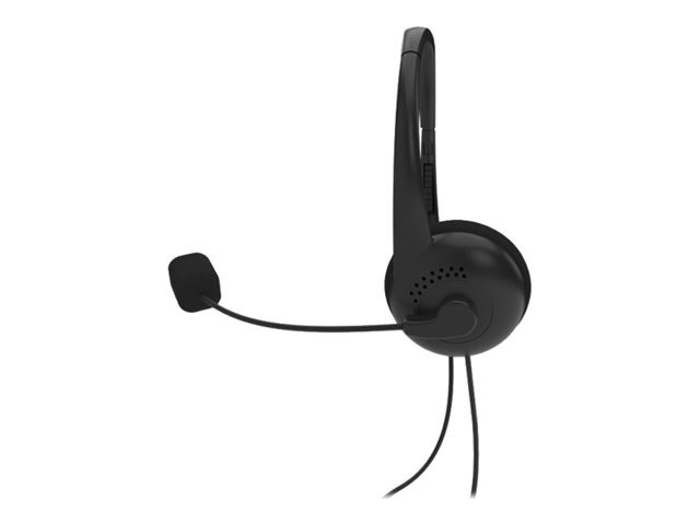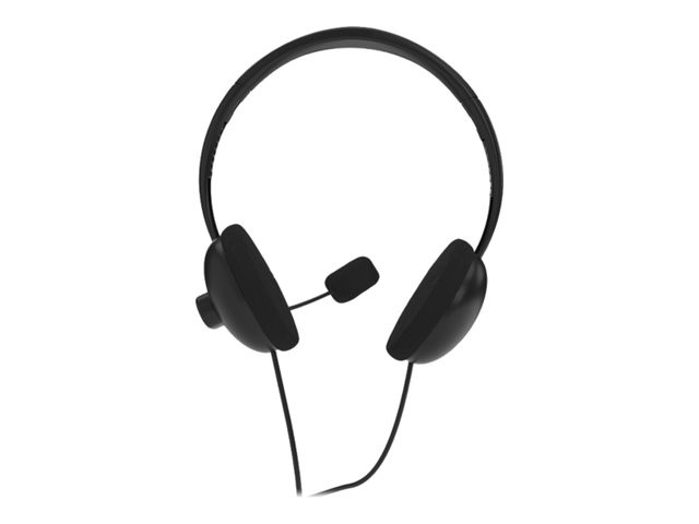 Stereo headphones with in-line volume control and a single TRRS plug for connection to any 3.5mm compatible device, flexible and omnidirectional microphone with adjustable boom.