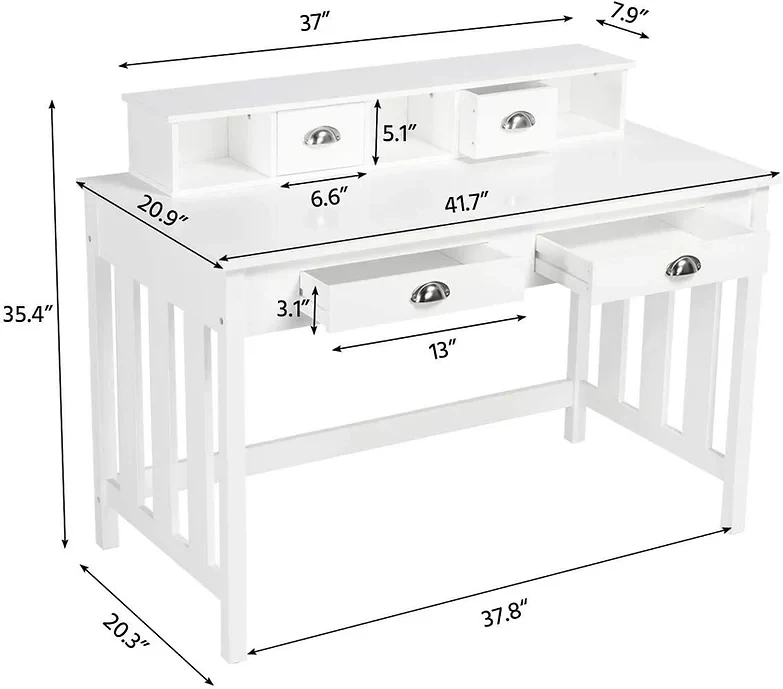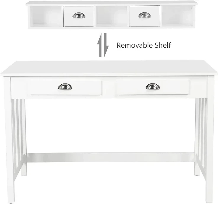 Looking for a versatile desk for home and office use? Give this Yaheetech stylish computer desk with spacious storage a try. It provides you with an all-in-one storage solution. You can take full advantage of one removable hutch, one-layer top shelf and 2-size four drawers. Built of selected MDF boards and solid pine wood legs, this home furniture piece for your safe use.