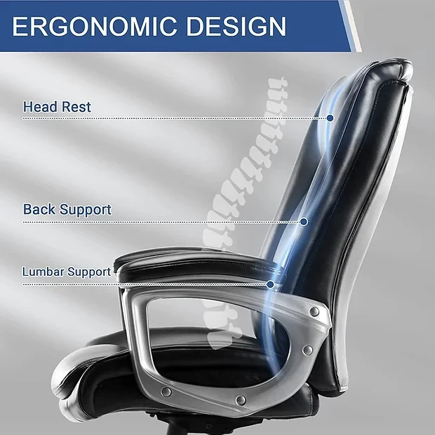 Ergonomic Design -- With the streamlined backrest of the home office chair and the integrated headrest, a large and high office chair fits your body perfectly, avoiding neck, upper and lower back stiffness during long hours of work or play, pain and discomfort.