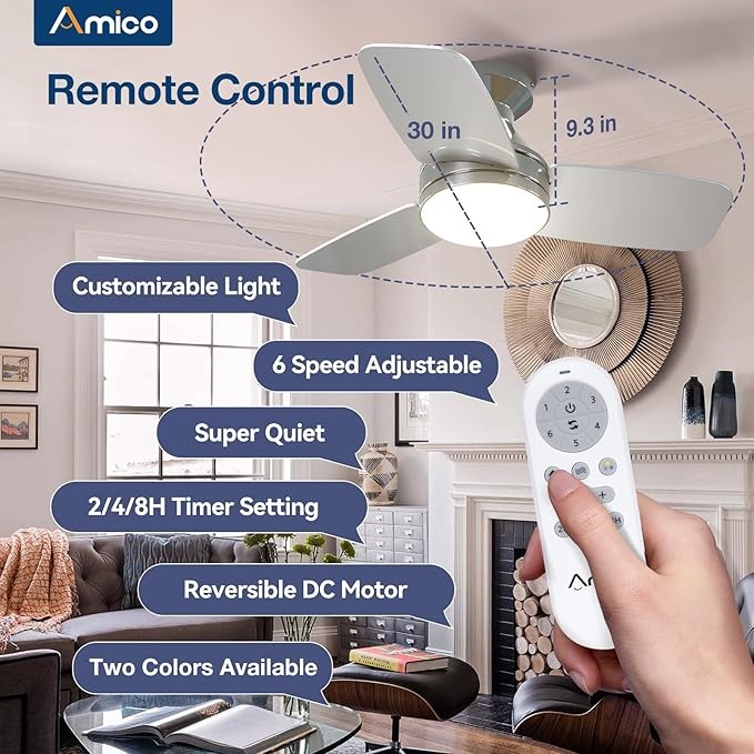 Ceiling Fans with Remote: All operations can be controlled by the remote controller, adjust the fan speed with 6 levels, select light color temperature, and supports timing (2/4/8 hour) sleep shutdown, on/off. The fan and light can be turned on separately. (Tips: After fixed, the remote control can be used as a wall switch)