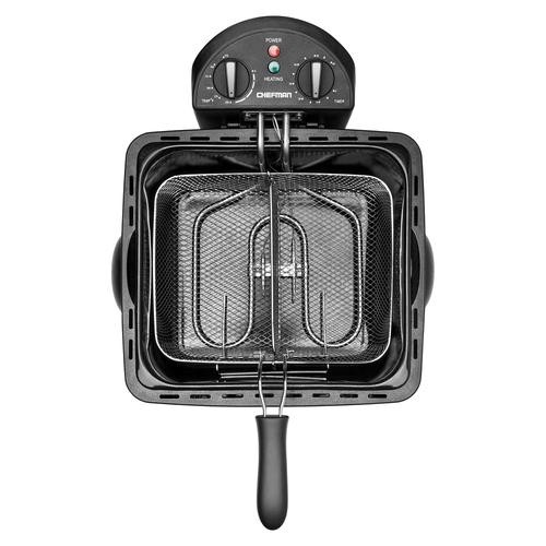 With the Chefman Jumbo Electric Deep Fryer, you can make high-quality fried foods for the family right at home, any day of the week. This fryer is built with an XL 4.5L basket capacity to fry hefty portions of food all at once helping to save you time. With easy-to-use temperature control, a timer, and a viewing window on the lid, this stainless-steel deep fryer turns out perfectly cooked food every time. The extra-large sized four-and-a-half liter capacity can be utilized with a large fryer basket, versatile enough whether eating alone or preparing a family meal.