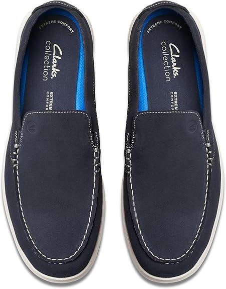 • Collapsible unlined navy suede upper