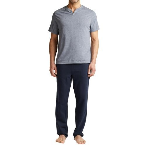 Feel comfortable and stylish in this men's pajama set from Copper and Oak, it consists of a soft, notch-collared, short-sleeved shirt and loose-fitting, breathable pants with drawstring waist adjustment.