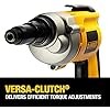 • Versa-Clutch torque adjustment system of the drywall screw gun dials in the proper torque needed to efficiently drive fasteners without stripping or breaking
