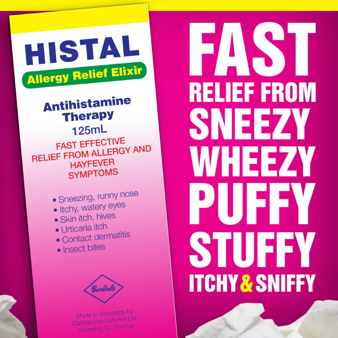 Histal Allergy Relief Elixir is a fast, effective way to relieve allergy and hayfever symptoms. The unique blend of ingredients has been proven to provide relief from the most common allergies and hayfever symptoms. Histal is safe for both adults and children and is the perfect choice for those who suffer from allergies and hayfever.
