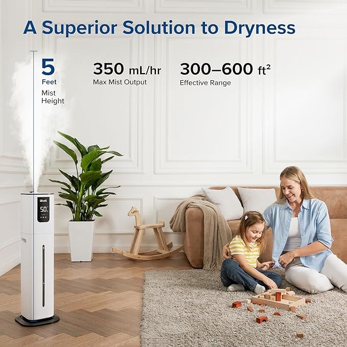 ?????-??????, ????????? ??????????????: Humidify up to 600 ft² with more than 2 feet of mist height and 350mL/h mist volume for thorough humidity throughout the room