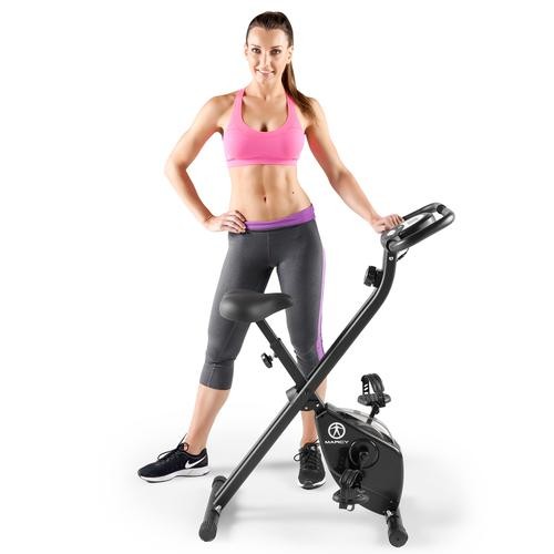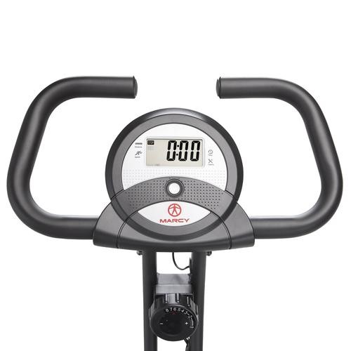 Equipped with a wide, high-density foam padded seat with height adjustment to accommodate all body types, this exercise bike offers a comfortable ride for anyone interested in home gym cardio. Continuous manually adjustable resistance and counterbalanced pedals ensure a customizable bike workout every time you use your Marcy NS-654 folding bike. Large, high-density foam-padded seat -Seat height adjustment for different Body types -Manually adjustable continuous resistance -Large, easy-to-read computer display shows speed, distance, time and calories burned -Innovative frame design folds flat for easy storage -Durable powder-coated finish -Counterweighted pedals and adjustable foot straps.