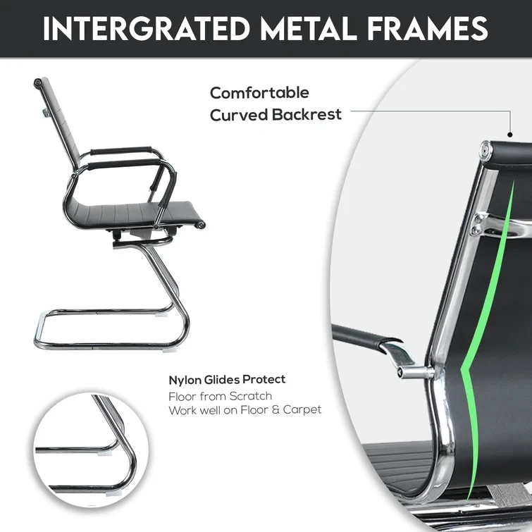 Pu leather office guest chair for reception - mid back heavy duty with removable arms - sled base without wheels for desk, waiting for the area, lobby, conference room - set of 2. Quality PU leather is what makes your sitting comfortable. Therefore, these visitor office chairs are made from high-quality PU faux leather and have a sleigh chrome base. Its curved back adjusts naturally with your spine to reduce fatigue.