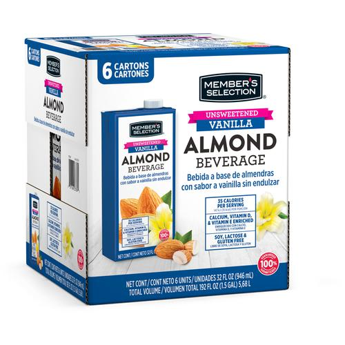 Member's Selection Unsweetened Vanilla Almond Beverage 6 Units / 946 ml / 32 oz