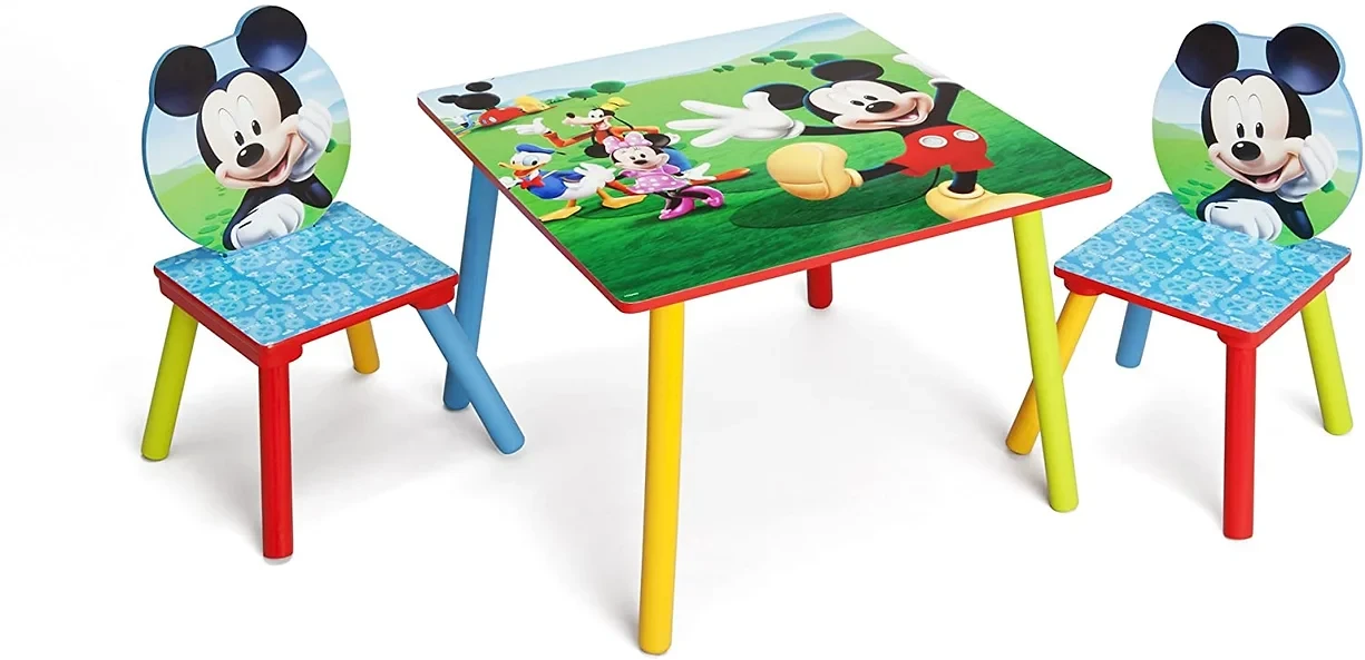 • FOR THE MICKEY MOUSE FAN: This kids table and chair set features colorful graphics of Mickey Mouse and friends