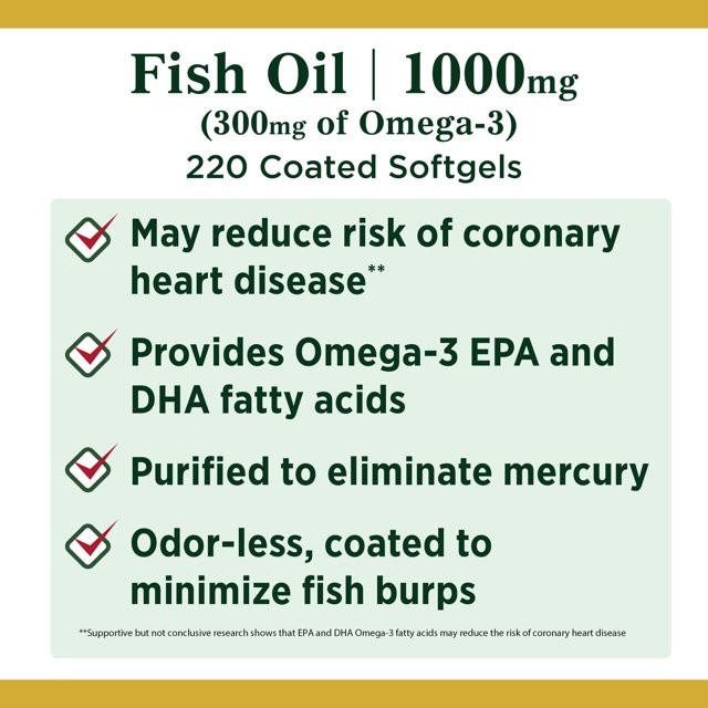 Nature’s Bounty Omega-3 Fish Oil Softgels, Odorless, 1,000 Mg, 220 Count