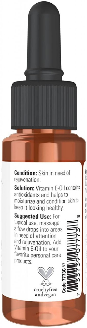 Condition: Skin in need of rejuvenation. Solution: E-Oil helps to moisturize the skin and keep skin looking healthy. Ingredients: Tocopherol (Vitamin E Oil) (soy) (non-GMO) and Organic Olea Europaea (Olive) Oil (Extra Virgin). For topical use, massage a few drops into areas in need of attention and rejuvenation. Add Vitamin E-Oil to your favorite personal care products.