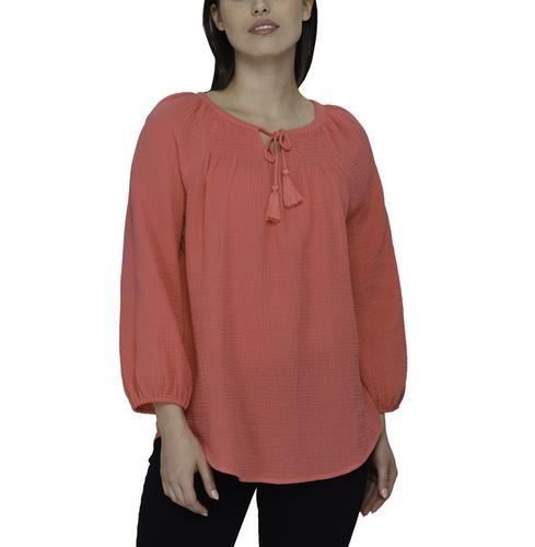 This beautiful blouse has a soft and fresh fabric, it will make you look feminine and fashionable. It features a V-neck with a slight neckline and laces with tassels to create a bow if you like, as well as three-quarter sleeves and elasticated opening.