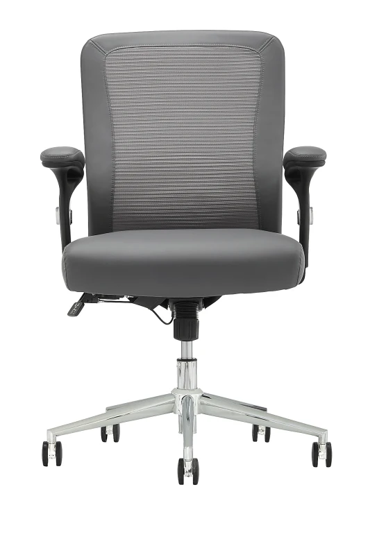 Power through long workdays with this Realspace Modern Comfort Cassia chair. The breathable mesh back helps keep you cool, while the plywood and steel frame blends strength with stability. The padded arms and coil-spring technology optimize comfort. This Realspace Modern Comfort Cassia chair has adjustable tilt tension and lock features for steady positioning, and the seat height and arms allow convenient customization for support.