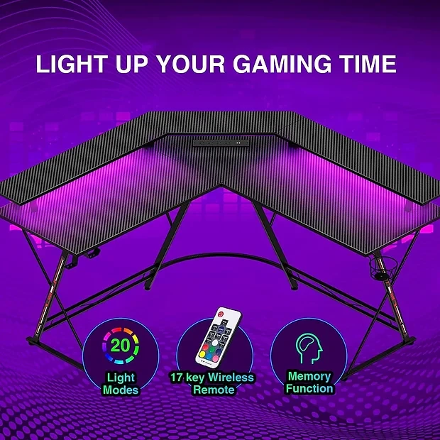 • 【Gaming Desk With Charging Station】The l shaped gaming desk includes a built-in socket with 4-Outlet & 2 USB Ports for smartphone, tablet or gaming gears.