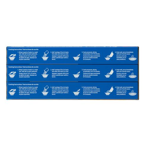 Contains: wheat ingredients - Semolina, niacin, ferrous sulfate, thiamine mononitrate, riboflavin, folic acid | Store in a cool and dry place.
